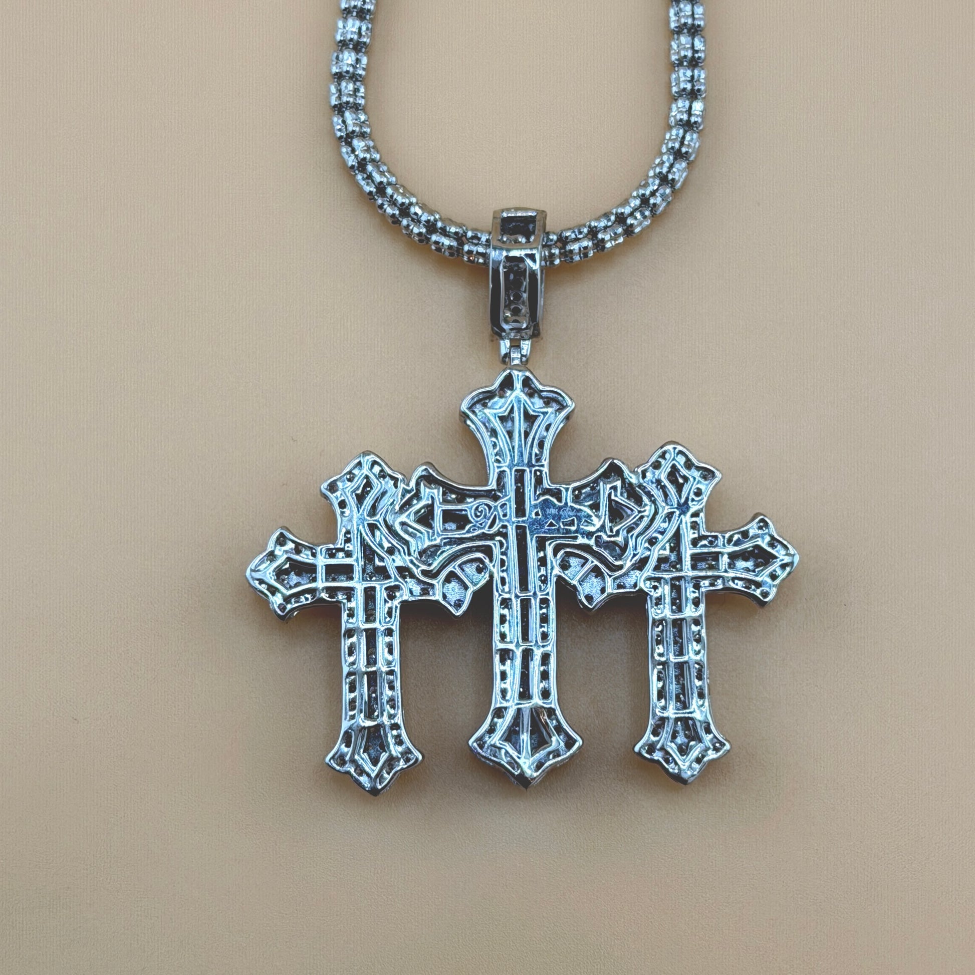 The triple cross design symbolizes faith, strength, and devotion, making this pendant both a powerful statement of belief and a luxurious piece of jewelry. The high diamond weight gives the pendant a bold, eye-catching look that shines from every angle.