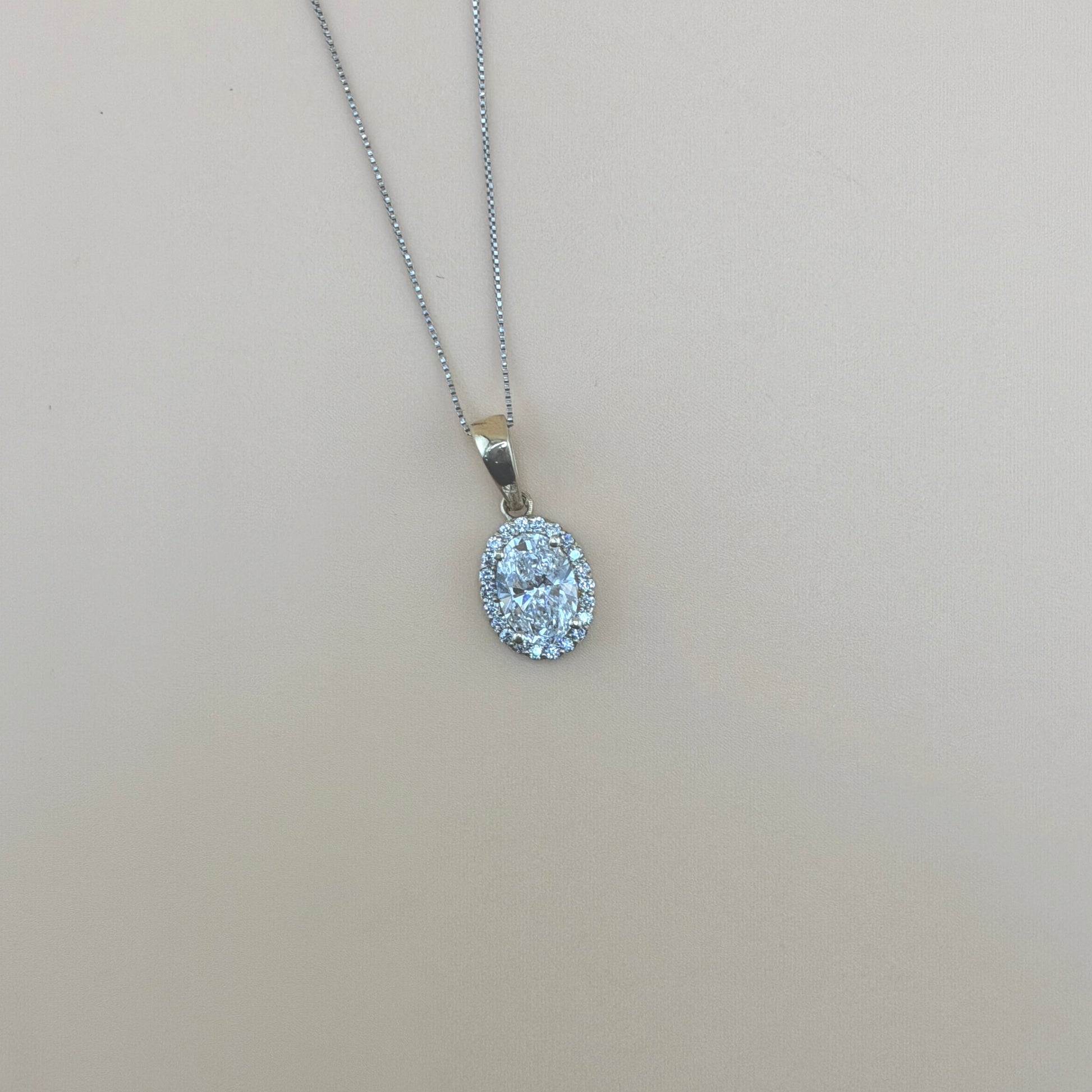 With a total diamond weight of 2.33 carats and VS1 clarity lab diamonds, this pendant delivers exceptional sparkle and refined sophistication. Its timeless halo design makes it perfect for both everyday elegance and special occasions.